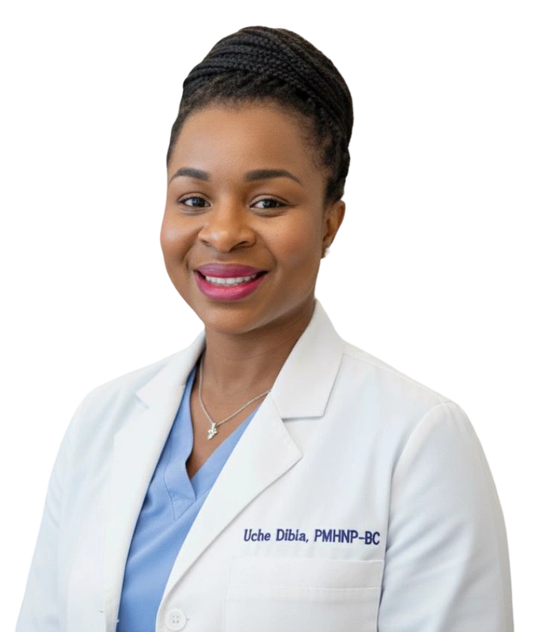 Hello, I’m Uche, a Psychiatric Mental Health Nurse Practitioner (PMHNP) with experience in providing compassionate mental health care.